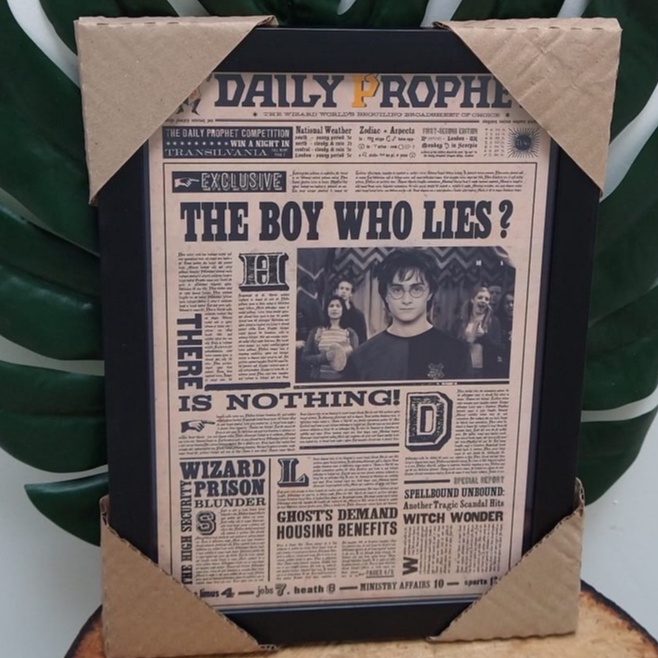 Quadro decorativo com moldura e vidro Harry Potter profeta diário Hogwarts Grifinória Sonserina pôster filme geek