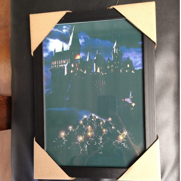 Quadro para decoração com moldura e vidro Hogwarts Escola de magia Harry Potter Rony Hermione Gryffindor Slytherin Ravenclaw Hufflepuff Grifinória Sonserina Corvinal Lufa Lufa