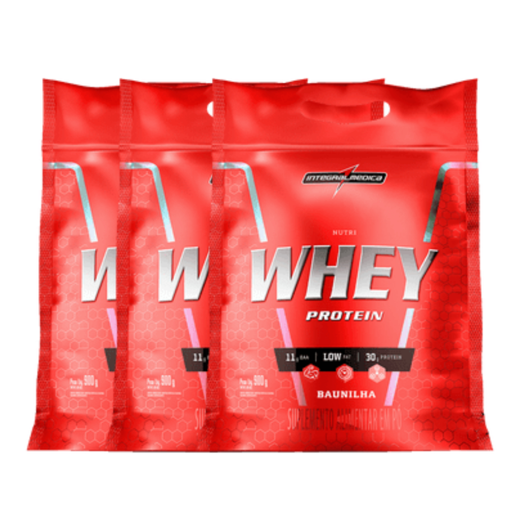 3x Whey Protein Nutri Integral Medica Hipercalórico Suplemento Alimentar Refil 900g Proteína Hipertrófico