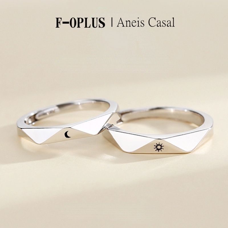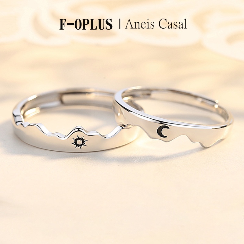 F-OPLUS | Anel Aliança de Sol e Lua Ajustável Par de Aliança de Namoro Compromisso com Caixa CRC020