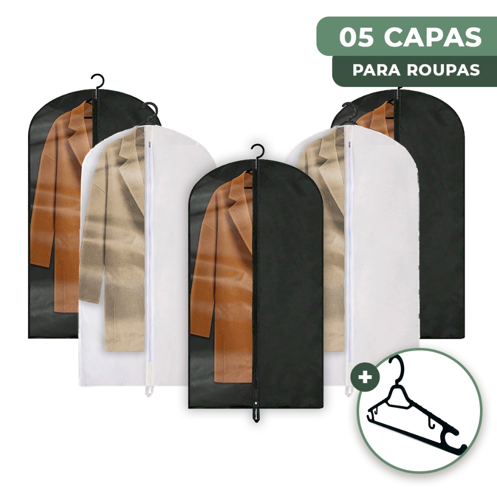 Kit 5 Capas Protetora TNT Para Roupas Vestidos Ternos Saco Com Zíper Palitó Organizador De Guarda Roupa Promoção Impermeável Pronta Entrega