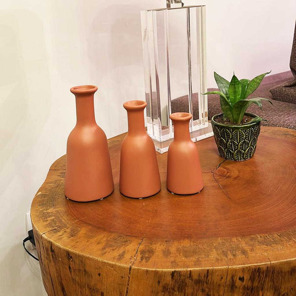 Kit Trio 3 Vasos Cerâmica Decorativo Centro De Mesa Sala enfeite rack sala Cozinha Terracota