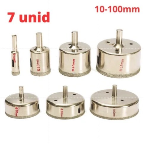 Kit 7 Jogo Serra Copo Broca Diamantada Porcelanato Vidro Ceramica Marmore 7 a 100mm N e Cortag Starrett