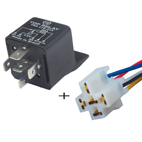 Rele auxiliar 5 pinos 12v 40amp universal com chicote conector