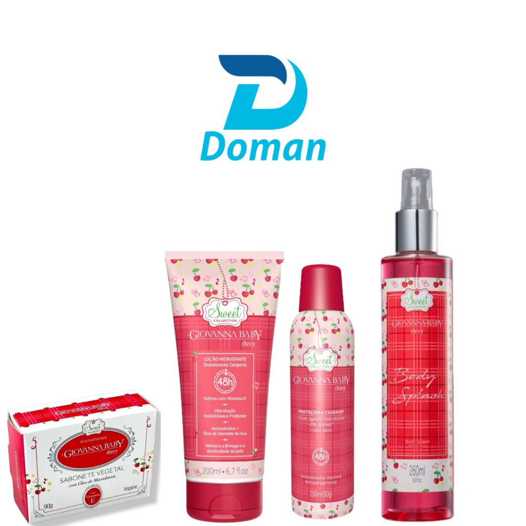 Kit Giovanna Baby Cherry Body Splash Desodorante Aerosol Loção Hidratante e Sabonete
