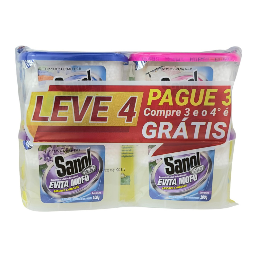Kit 4 Antimofo Sanol Leve 4 Pague 3 Absorve Umidade Desumidificador 100g Cada