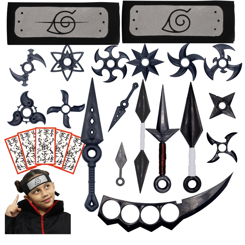 Kit 7 Kunai 10 Shuriken Naruto com Bandana 18 Peças Infantil