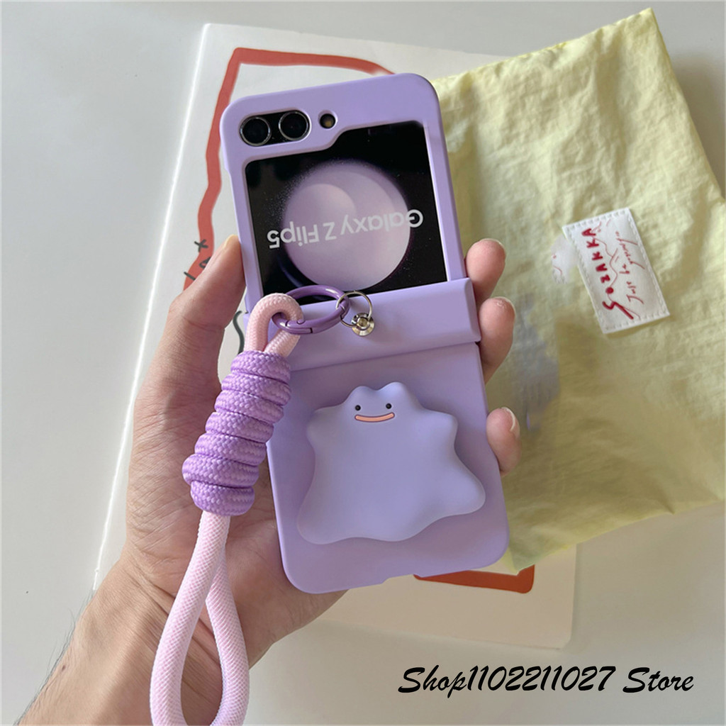 LUSHUO Capa Para Telefone Samsung Galaxy Z Flip 6 5 4 3 Traseira De PC Roxa Fofa 3 Em 1 Dura Com Suporte Fantasma De Desenho Animado 3D E Alça De Mão Flip5 ZFlip5 ZFlip 5 Flip4 Flip3 Flip6