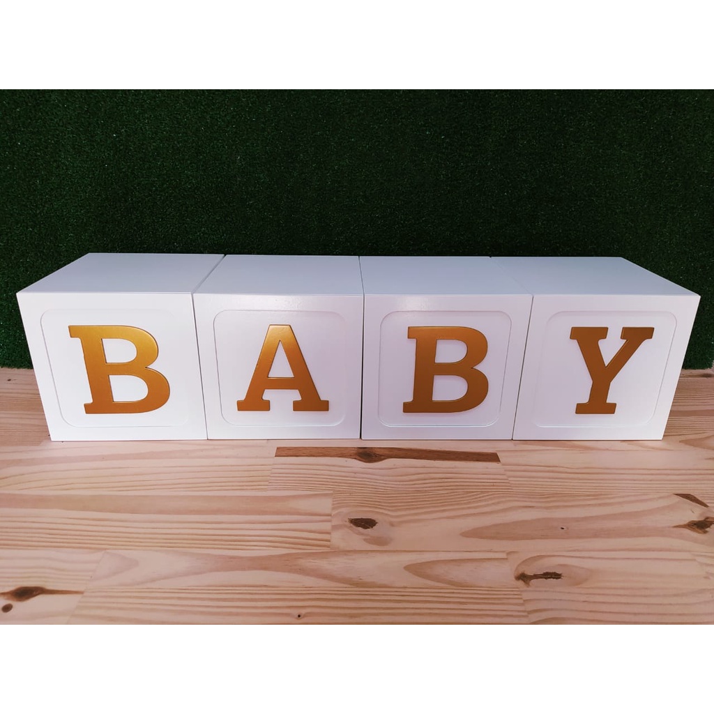 Cubo BABY Decorativo Mdf Pintado 11x11x11 Branco e Dourado