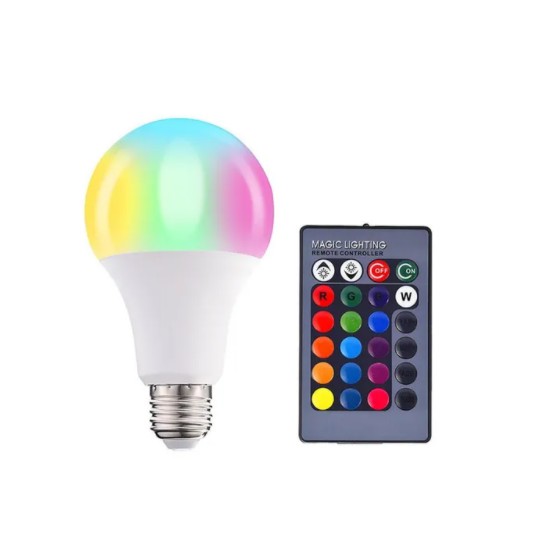 Lâmpada Led Rgb 16 Cores 10w Bivolt E27 Com Controle Remoto