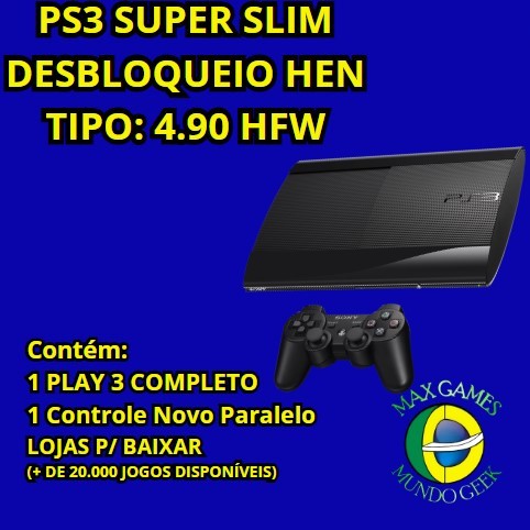 PS3 PLAYSTATION SUPER SLIM 500 GB H.E.N. COM 1 CONTROLE ENVIO FILMADO E FOTOGRAFADO SONY