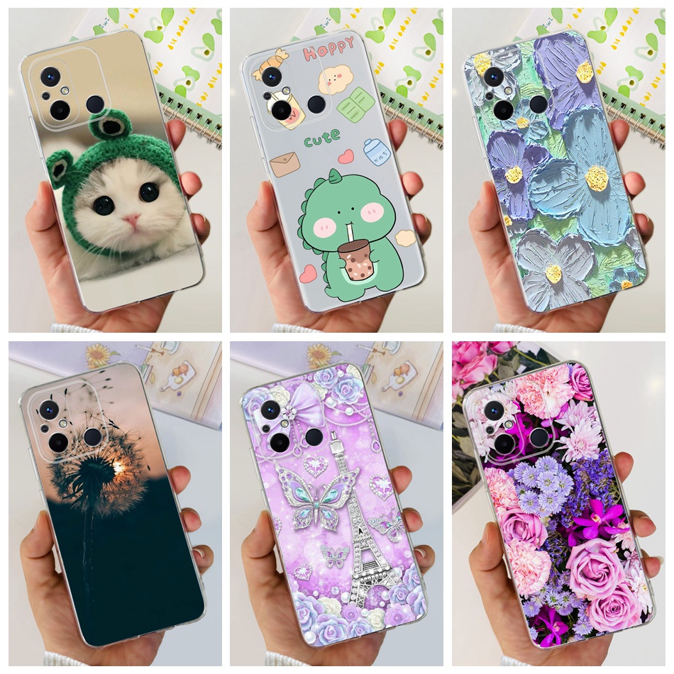 Xiaomi Redmi 11A 12C 2022 Caixa De Silicone Macia TPU Transparente Para Impressão De Flores De Gato Redmi11A Redmi12C 4G Clear