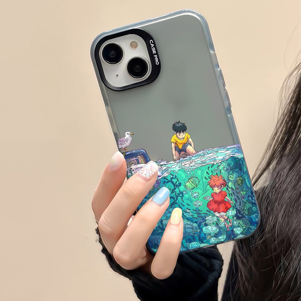 Anime Ponyo Em Uma Capa De Telefone Fosca Cliff Compatível Para iPhone 14 Pro Max 11 13 12 X XR XS 7 8 Plus SE 2022 Silicone Macia À Prova De Choque Câmera Dura