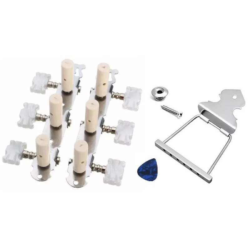 Kit Tarraxa Tarracha Violão Pino Grosso Nylon + Afirmador Cordal Rabicho Violão + Palheta