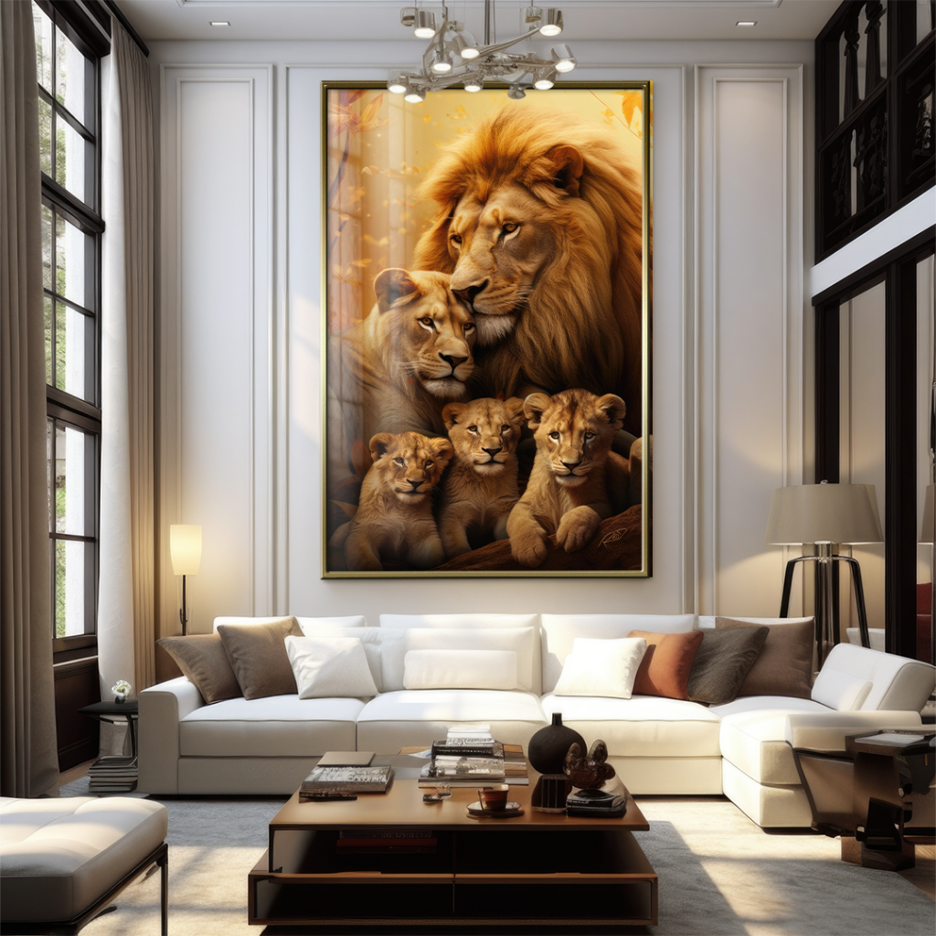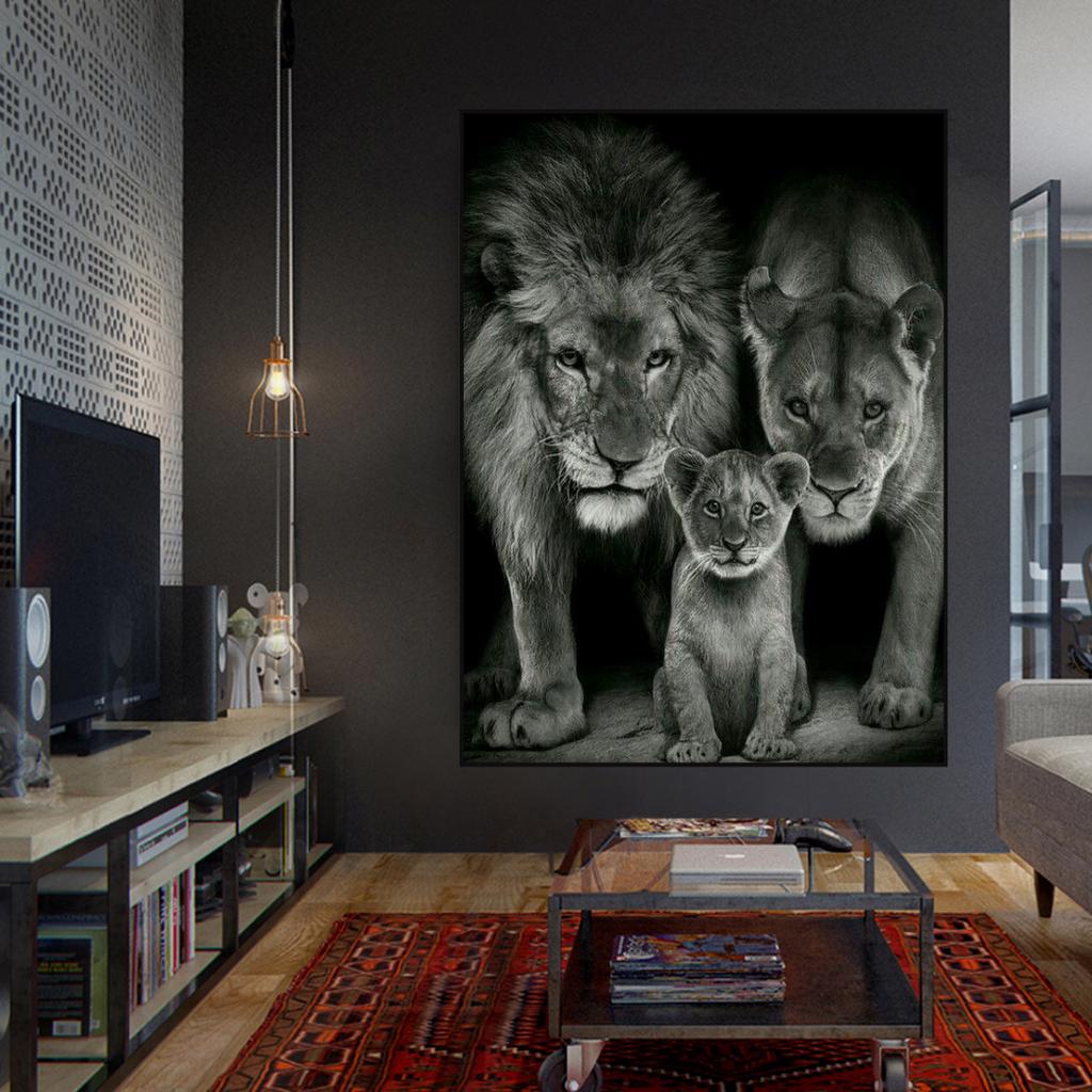 Quadro 80x60 CM Decorativo GRANDE Tela Alta Resolução Para Sala Quarto Escritório Quadro Familia Leão Decoração