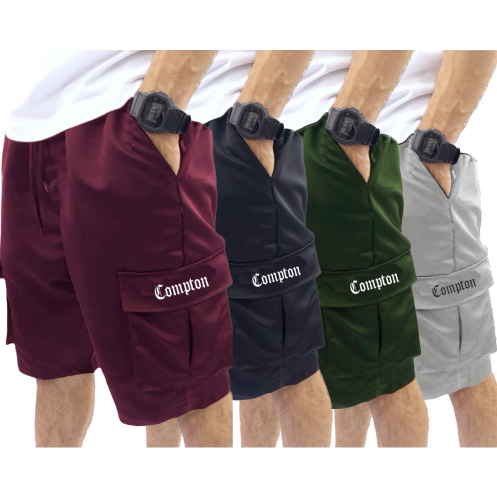 Kit 4 Bermudas Corta Vento Bolso Cargo Compton Colors Verão