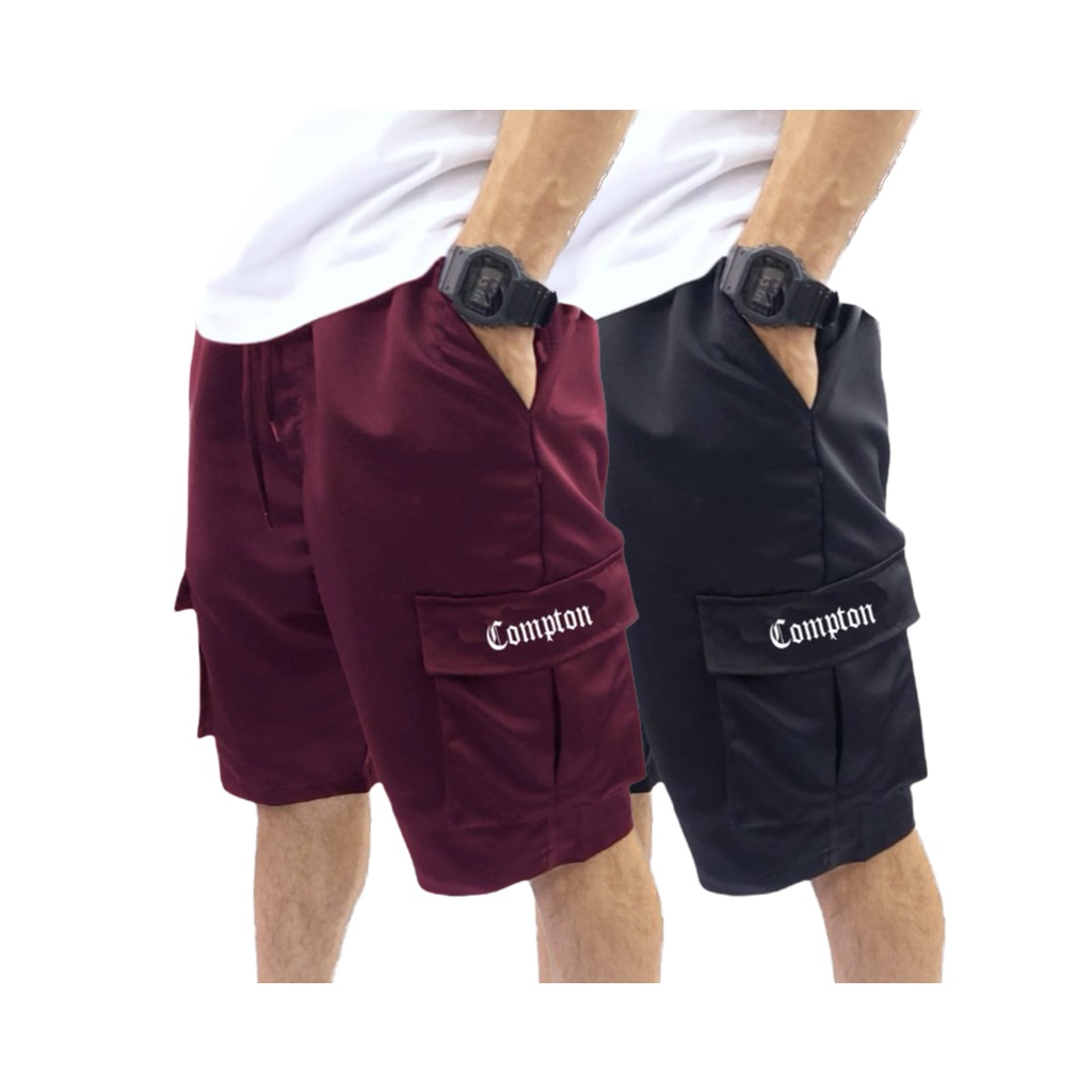 Kit 2 Bermudas Corta Vento Bolso Cargo Compton Colors Verão