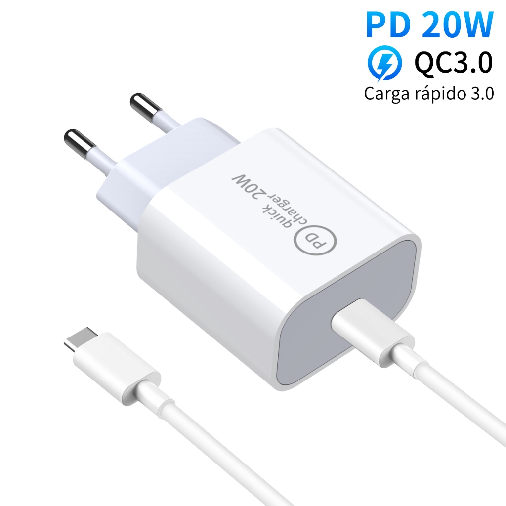 Monee Carregamento rápido da UE Kit Carregador iPhone Turbo Tipo-C 20W + Cabo Lightining para IPhone Carga rápida