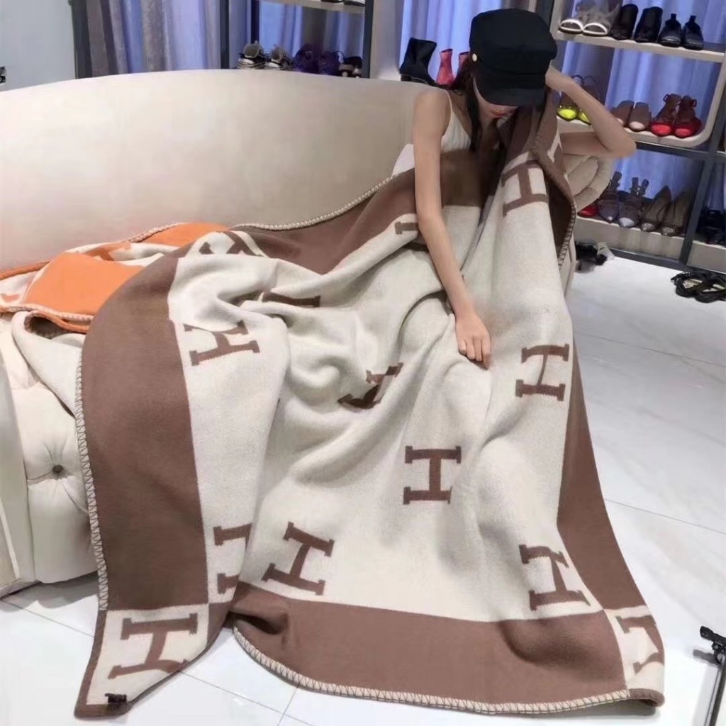 HERMES Carta H De Alta Qualidade Cashmere Shawl Ar Condicionado Sofá Manta Escritório Siesta De Lã Viagem Em Branco Único