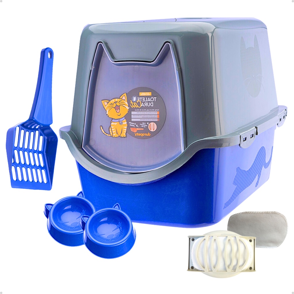 Caixa de Areia Para Gatos Pets Banheiro Cama Bandeja Higiênica Sanitário Toalete Cat Plus Furacão Pet Pá Paneira Comedouro Plástico