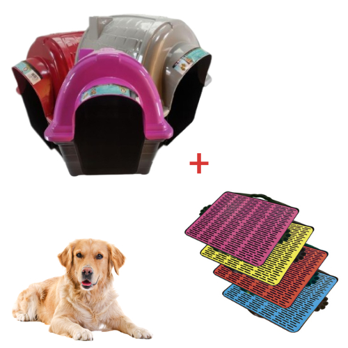 Kit Casa Cama Iglu N6 Cachorros Gatos Grande Casinha + Tapete Higiênico Canino Banheiro