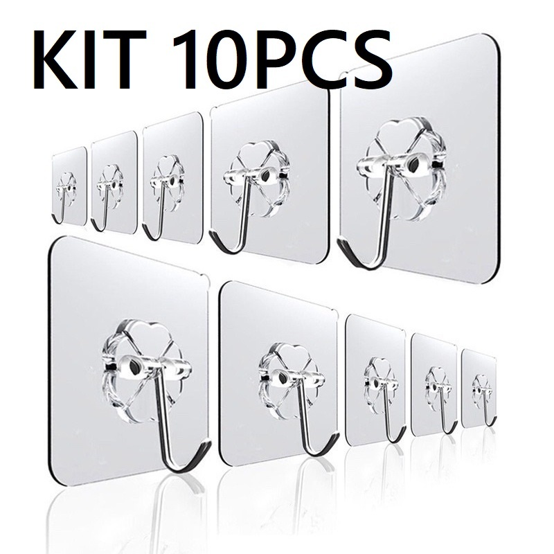 Kit 10 Ganchos Parede Adesivo Organizador Multiuso Com Dupla Face Para Pendurar Objetos