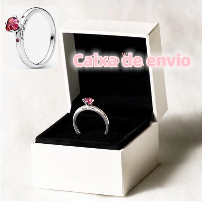 Anel De Coração Vermelho De Prata 925 Brilhante
