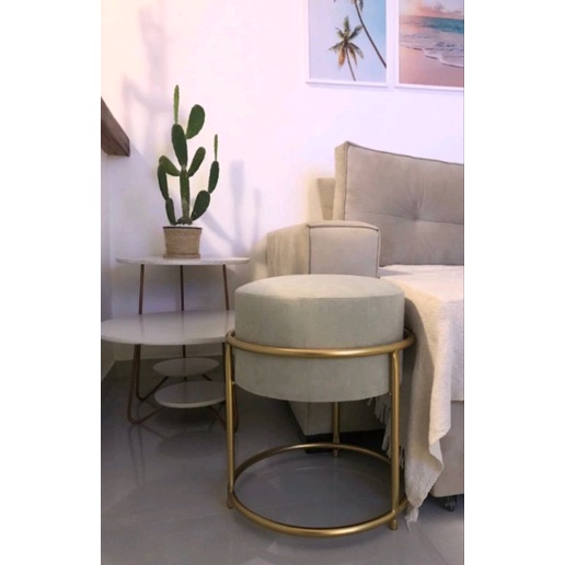 1 Puff banqueta redondo ferro decoração casa