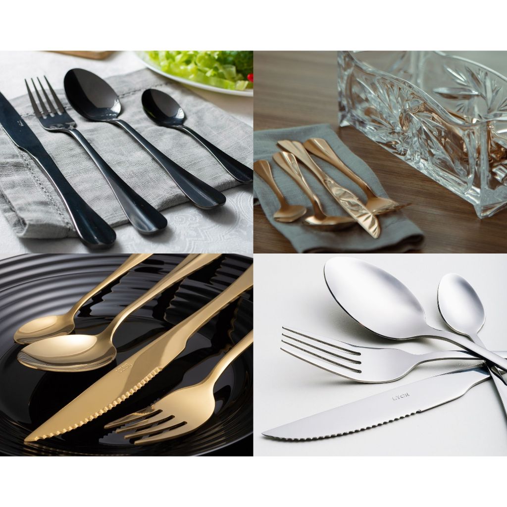 Kit Jogo De Talheres Luxuoso Mesa Posta 24 Peças Inox Premium Dourado Preto Prata Rose Colher Garfo Faca Colorido Cozinha Chique