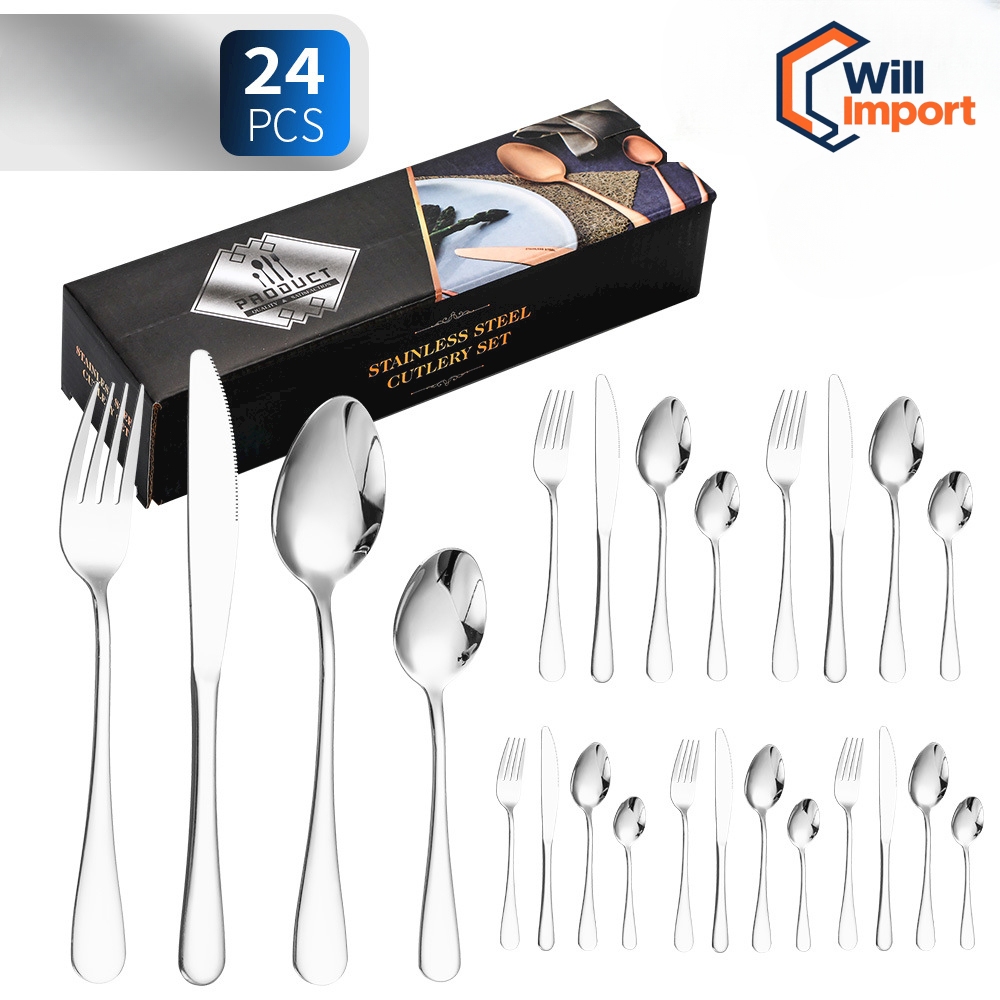Kit Faqueiro Jogo de Talheres 24 Peças Talheres Prata de Aço Inox Garfo Colher Faca Colher De Mesa utensílios de cozinha