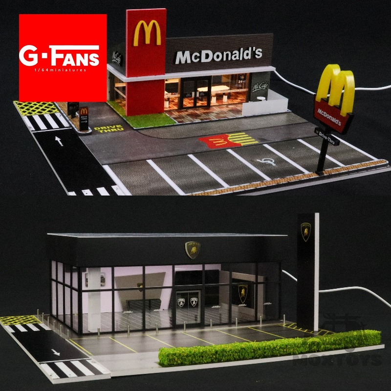 G-FANS 1 : 64 Led Light Diorama MC Loja De Hambúrgueres De Alimentos/Black Center Modelo Edifício w/Parking