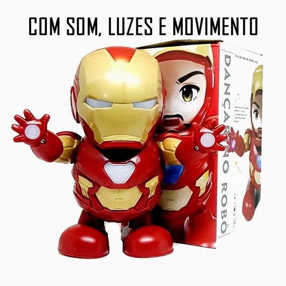 Brinquedo Robo Dançarino Boneco Homem De Ferro - Marvel - Com Som Luz E Movimento