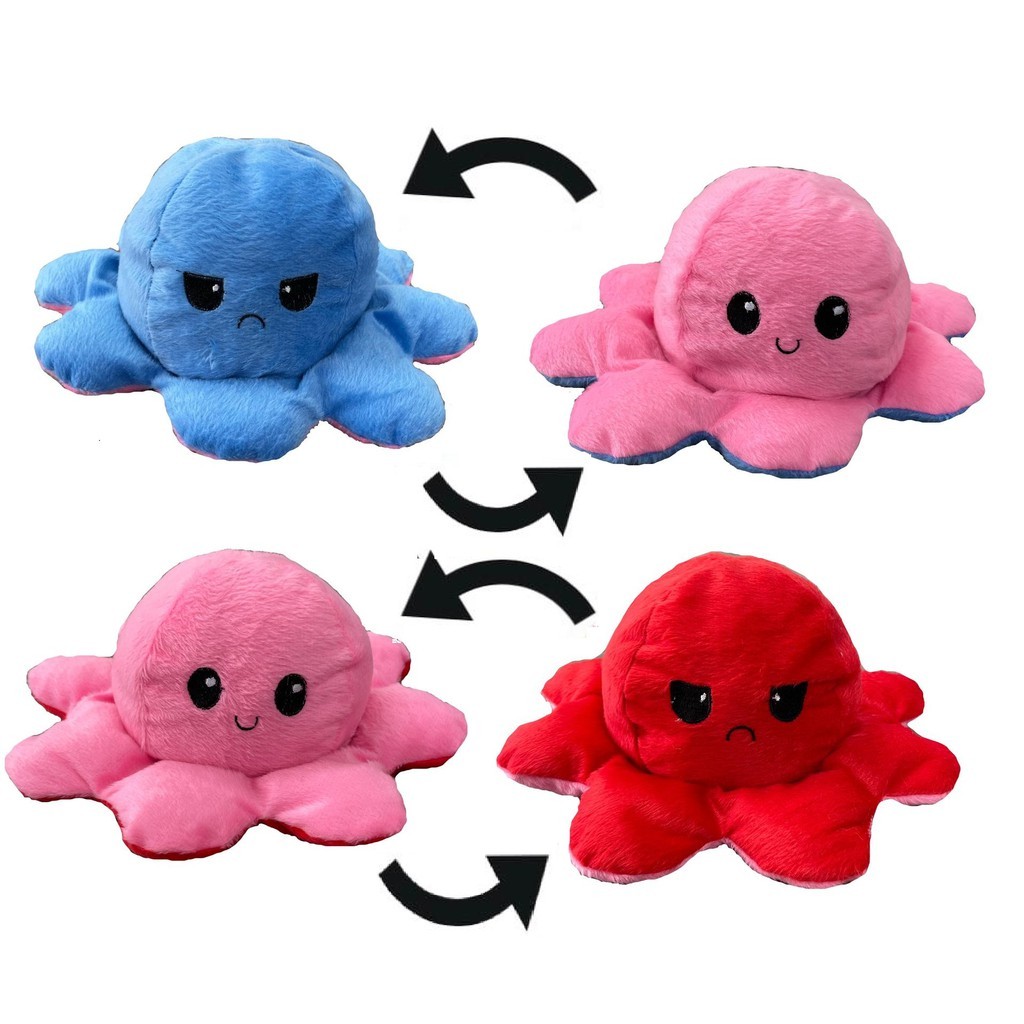 Pelúcia Polvo Reversível Bipolar do Humor Feliz e Bravo Triste Tik Tok Brinquedo Dupla face Bichos octopu Boneco para Presente Criança Flexível Azul Rosa Octopus Fogo Vermelho Envio direto do Brasil Imediato Promoção Black-friday