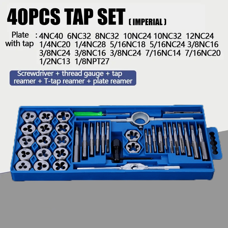 Jogo De Macho E Tarracha Tarraxa Cossinete Femea Com 40 Peças Tungstênio Para Metal Alumínio Plástico Ferro Canos Rosca
