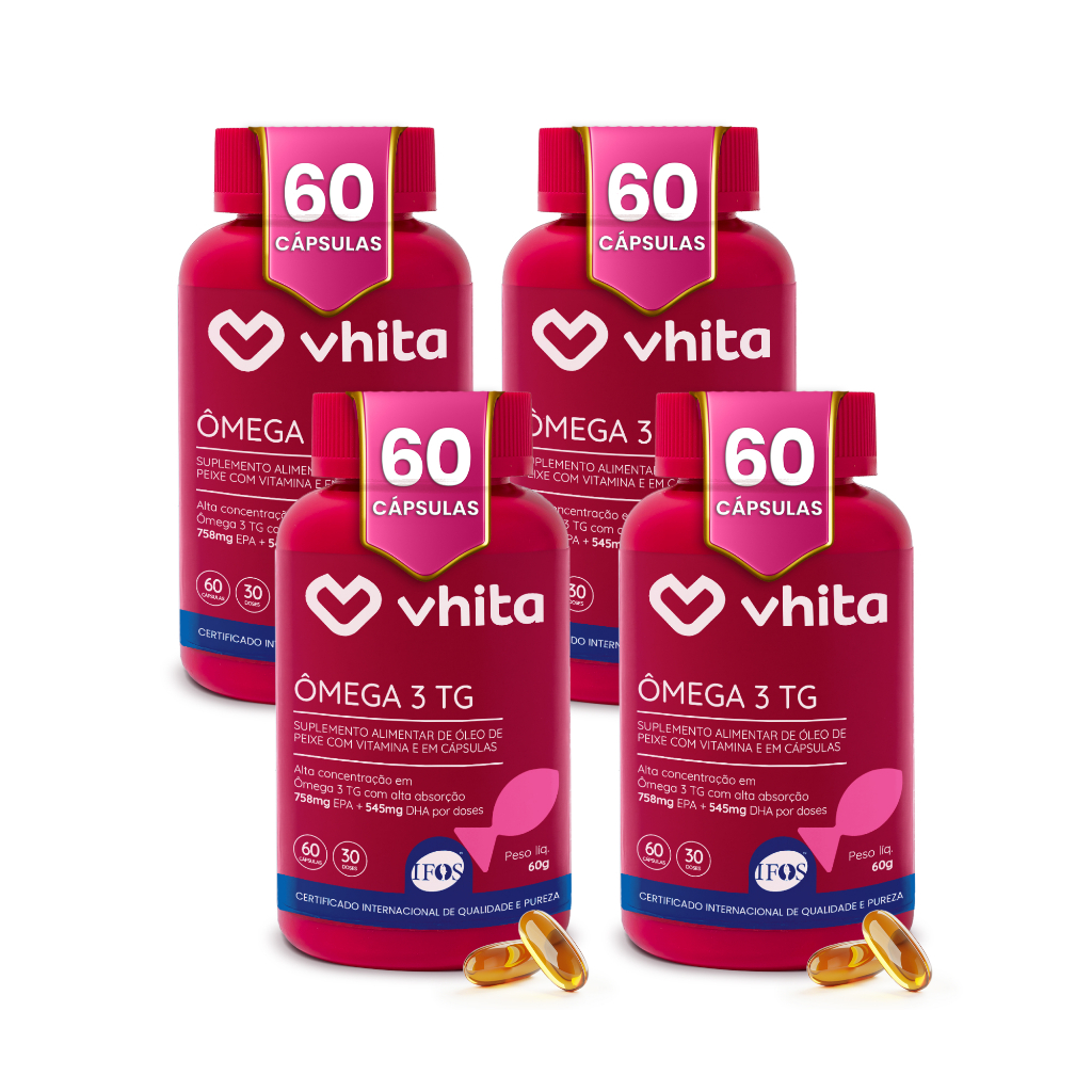 Ômega 3 1000mg TG Importado e rico EPA DHA com selo IFOS e Vitamina E de 60 caps Vhita (4 unidades)