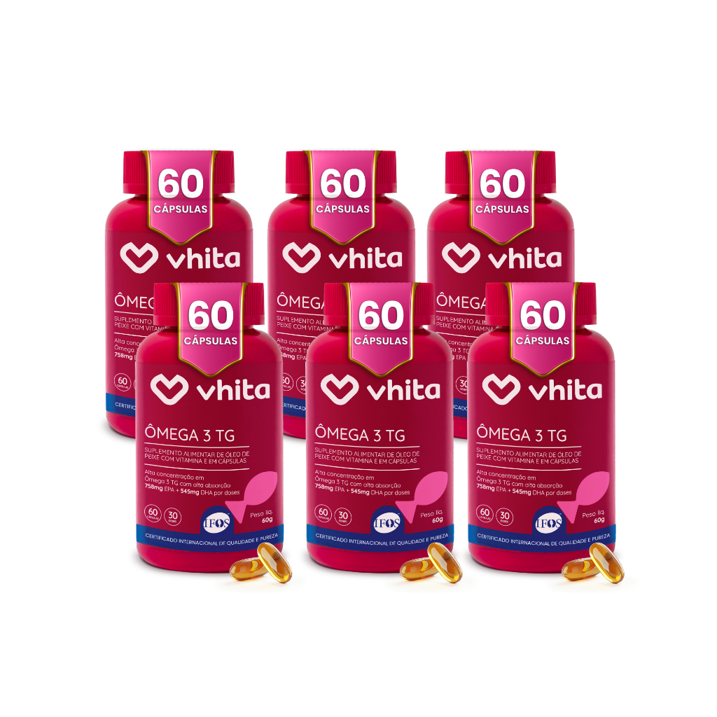 Ômega 3 1000mg TG Importado e rico EPA DHA com selo IFOS e Vitamina E de 60 caps Vhita (6 unidades)