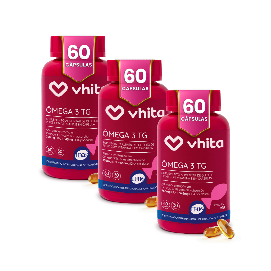 Ômega 3 1000mg TG Importado e rico EPA DHA com selo IFOS e Vitamina E de 60 caps Vhita (3 unidades)