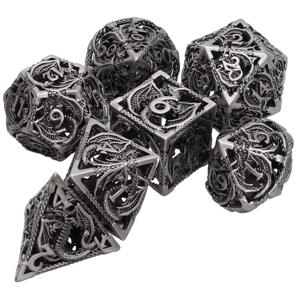 Conjunto de dados oco DND Dungeons and Dragons D&D Dice 7 PCS Conjunto de dados poliédrico de metal para Warhammer MTG Pathfinder RPG, Dados de RPG D e D Conjunto de dados D20 D12 D10 D8 D6 D4