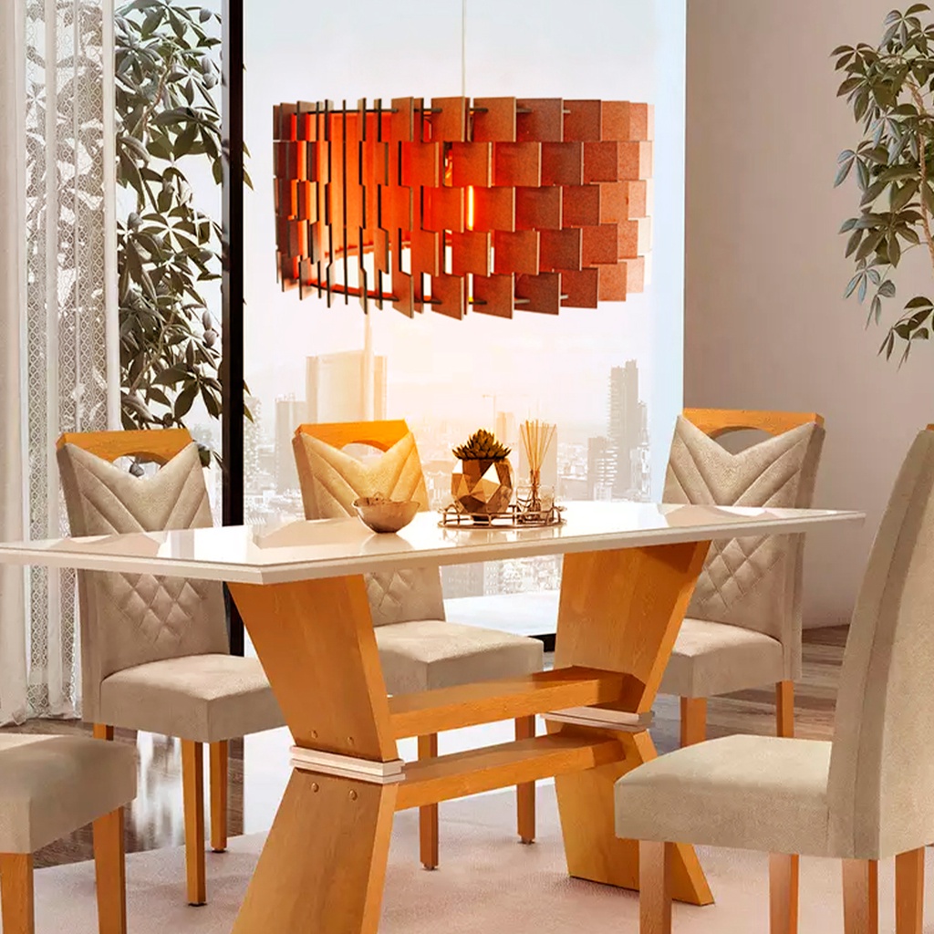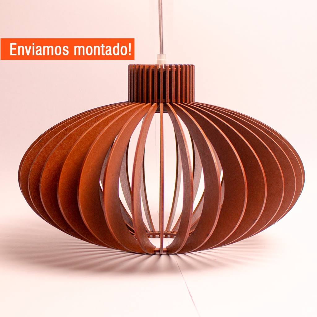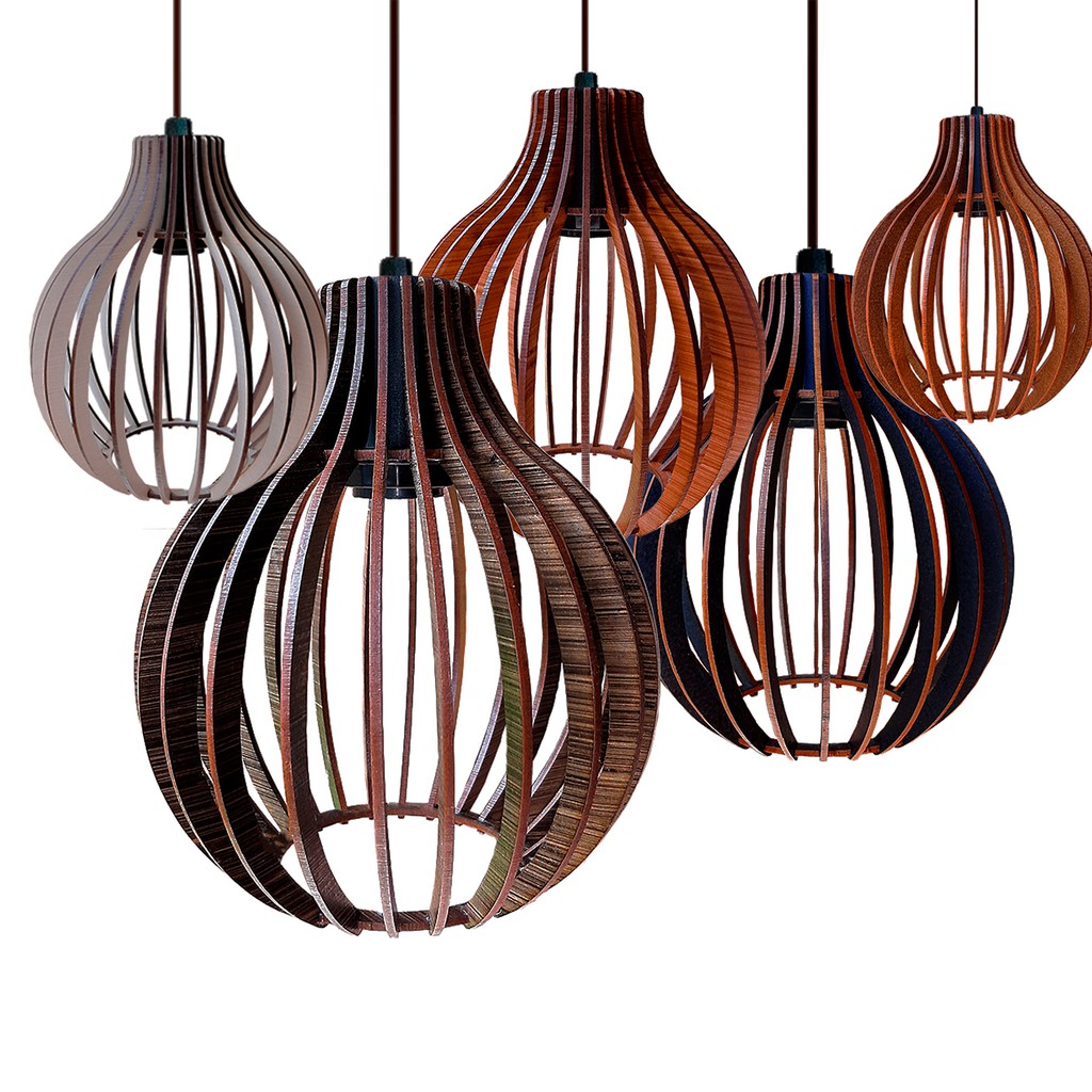Luminária Pendente de Teto Decoração Casa Cozinha Sala Lustre Madeira MDF Presente Barato
