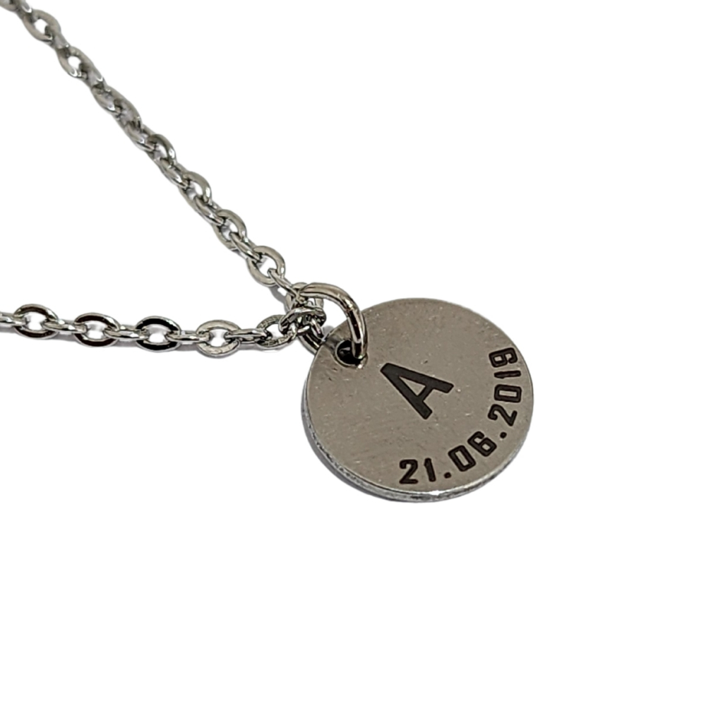 Gargantilha correntinha com pingente medalha letra nome data gravação a laser em aço inox personalizada masculina feminina