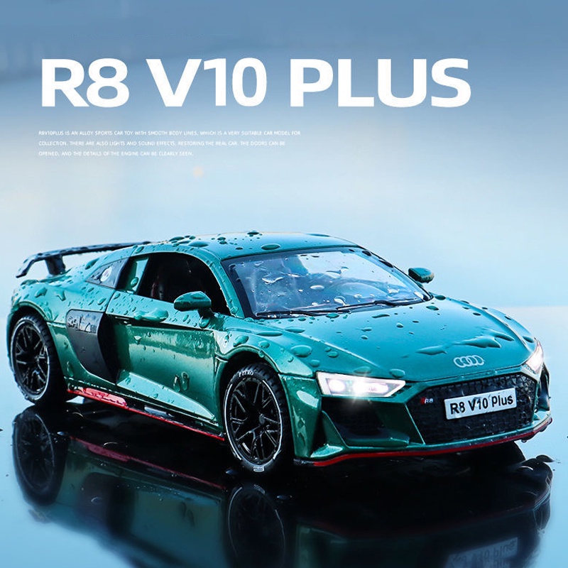 1 : 24 Escala Audi R8 V10 Plus Carro De Liga Modelo Diecast Com Som Luz Amantes Do Coleção Kids Aniversário Presente Metal Meninos Brinquedos