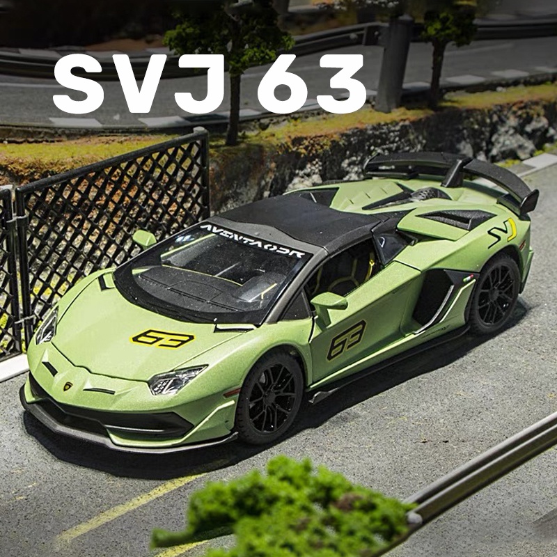 1 : 24 Escala Lamborghini SVJ 63 Modelo De Carro De Liga Metálica Diecast Som Leve Coleção De Amantes Do Carros De Aniversário Infantil Presente Metal Meninos Brinquedos