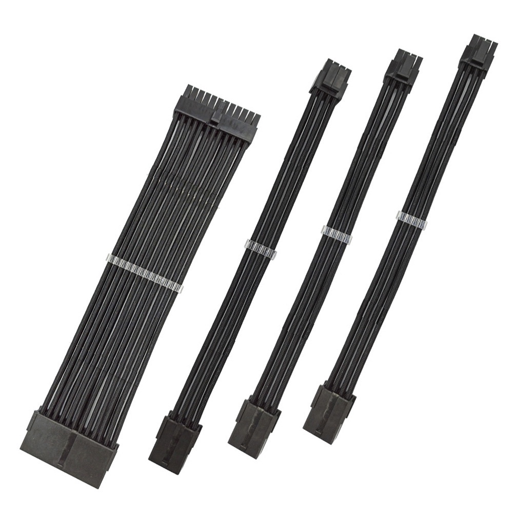 Kit 4 Cabos Sleeved Preto Extensor Fonte Atx Gpu Eps Pci-e Cabo Extensão Fonte de Energia para Placa mãe Cabo Sleeved Extensor Para Placa de Vídeo Gpu Cabo Cabo Extensor Alimentação de Energia Fonte x Placa Mãe De Computadores