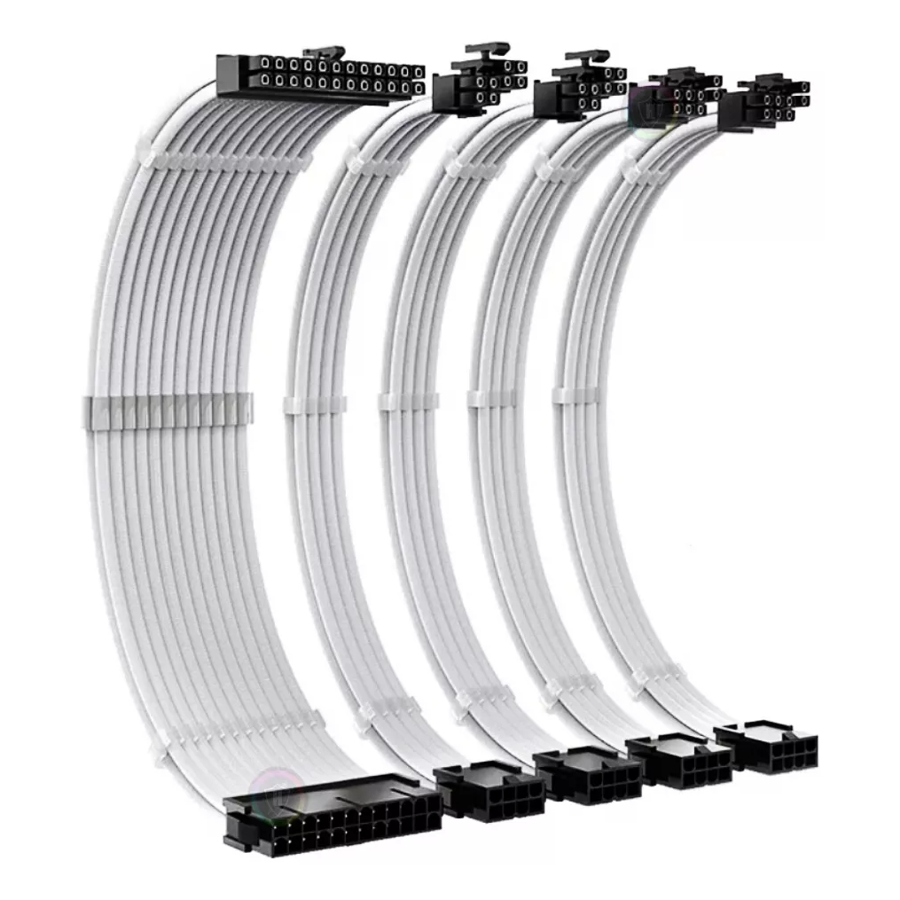 KIT 5 CABO SLEEVED FULL WHITE (BRANCO) EXTENSOR CABOS DA FONTE 1x 24 Pinos (Placa mâe) - 2x4+4 Pinos (CPU) - 2x6+2 Pinos (GPU)