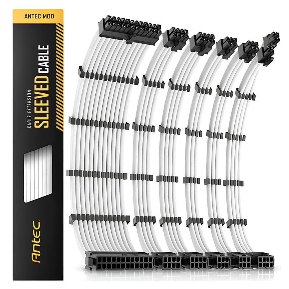 Kit 6 Cabos Extensor Antec Cabo Sleeved Branco Premium Eps Atx Pcie