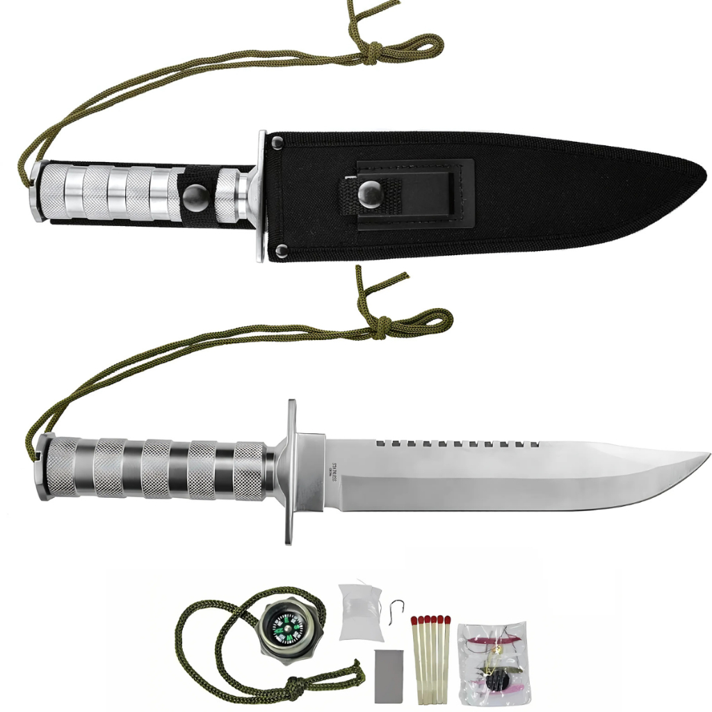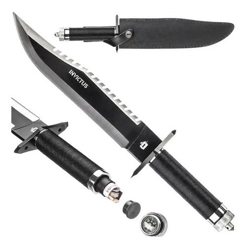 Faca Rambo Tática Militar Sobrevivência Pesca caça Lamina Serrilhado + Kit Sobrevivencia