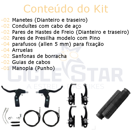 Kit Jogo De Freio V-brake Nylon C/ Manete+cabos Bike Mtb