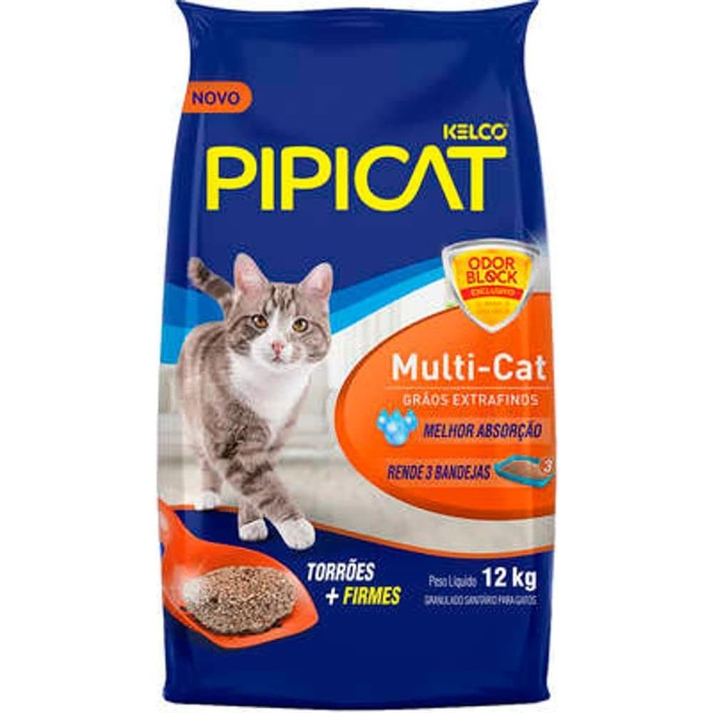 Areia Higiênica Sanitária Para Gatos Multicat Pipicat 12kg Pipicat