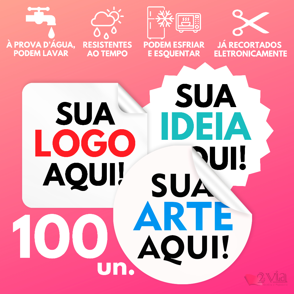 100 Etiquetas Adesivas Personalizadas - Adesivos Personalizados Em Vinil Com Recorte
