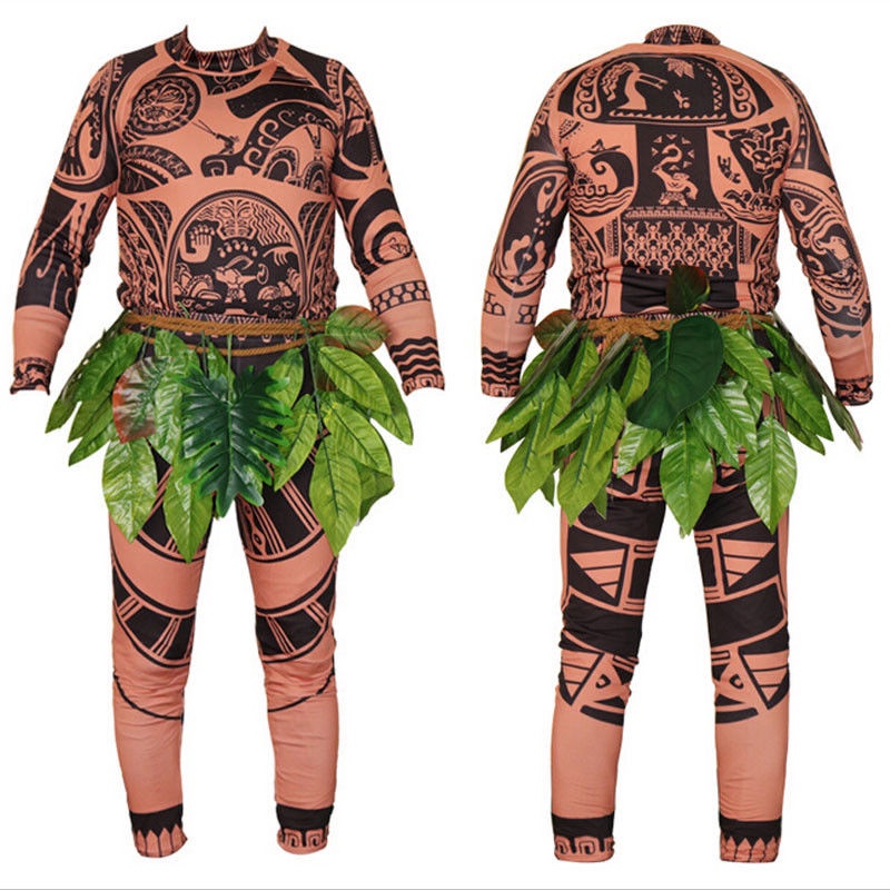 3PCS Moana Maui Tattoo Camiseta + Calças + Saias Halloween Homem Adulto Cosplay Fantasia Novidade Pai E Filho